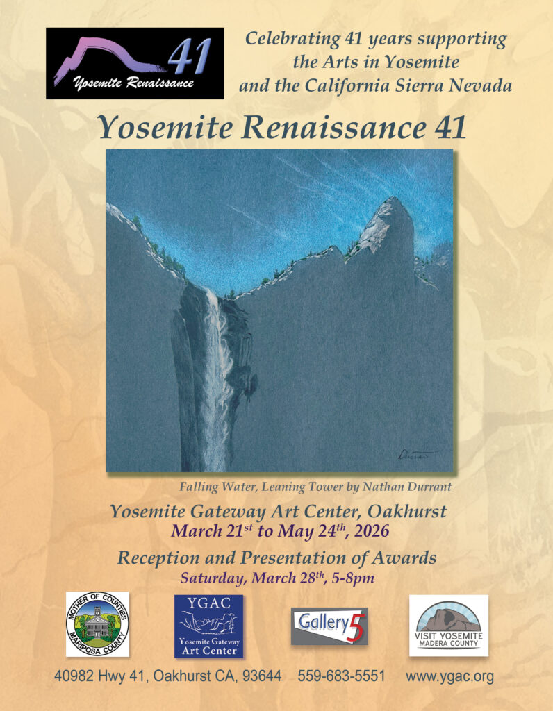 Proudly celebrating 41 years of art inspired by the Sierra Nevada mountains and Yosemite National Park, the traveling art show at YGAC from March 21st – May24th.